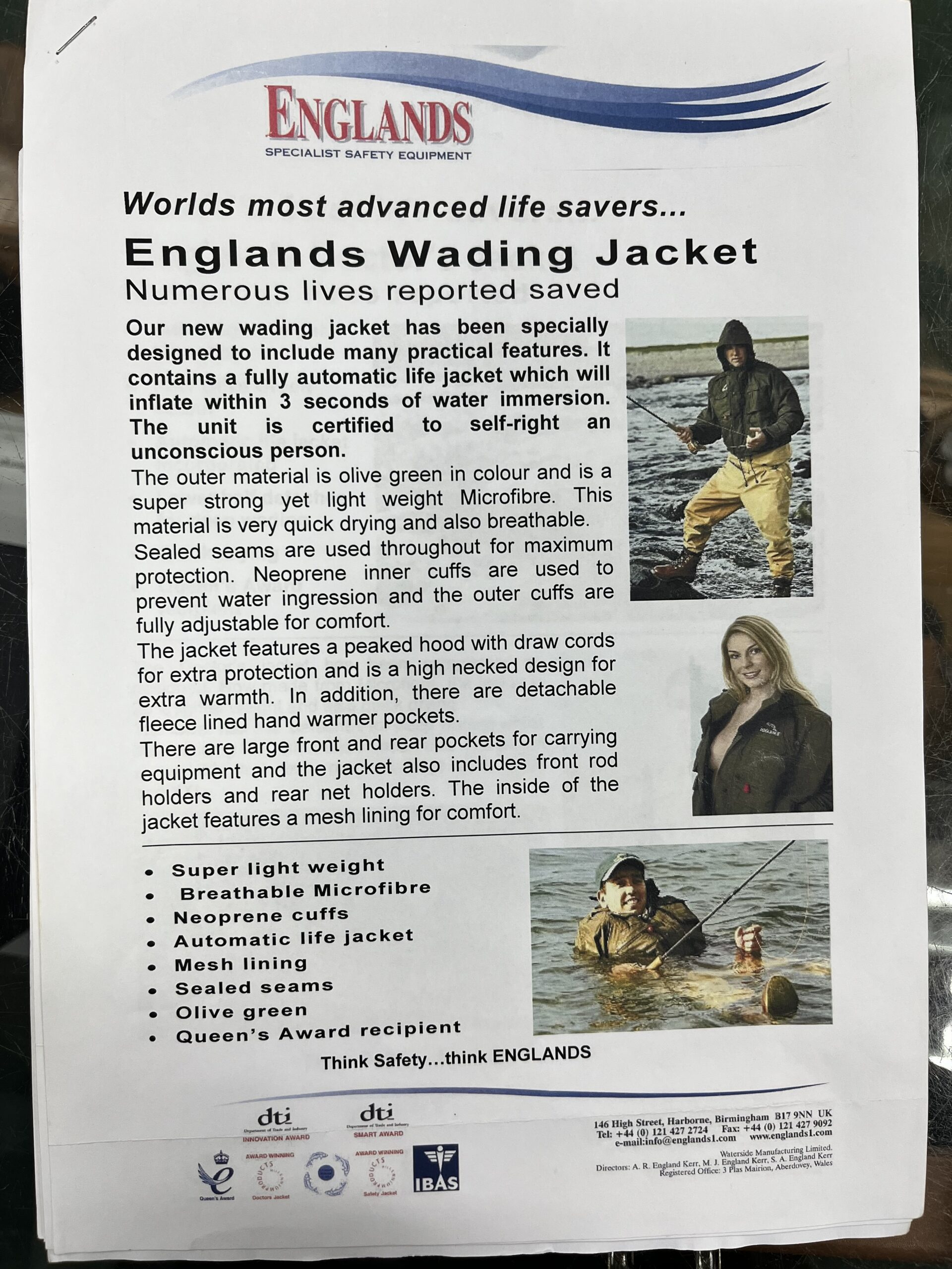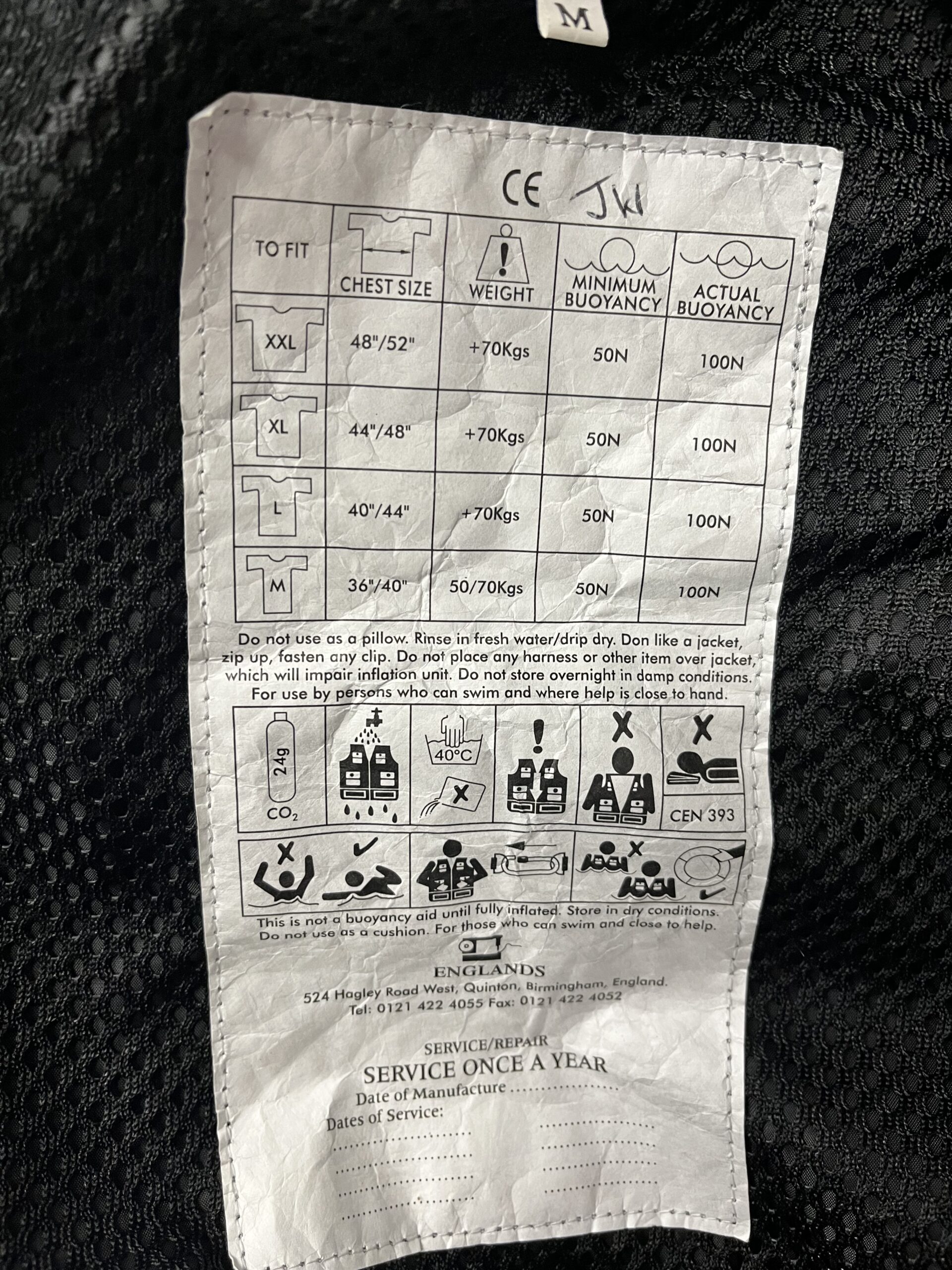 Pre Loved Englands Life Jacket with built in fully automatic life vest.